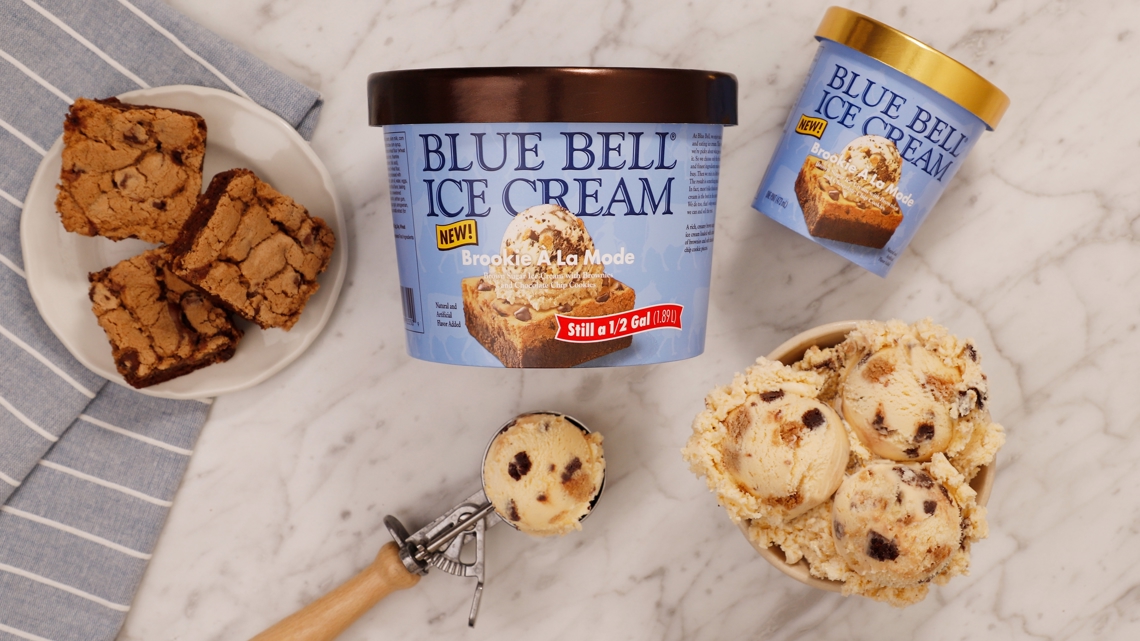 “We enjoy finding new ways to top already delicious desserts,” said Sara Schramm, Blue Bell marketing brand manager. “Blue Bell Ice Cream is the perfect addition to a brookie. Our new flavor starts with a delicious brown sugar ice cream, loaded with chunks of chewy brownies and soft chocolate chip cookies in every bite. It is the best of both, or all three worlds!”