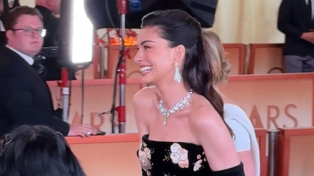 Anne Hathaway, Anna Wintour stride down Oscars red carpet