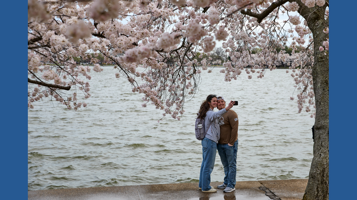 WUSA9 will have live coverage from the Tidal Basin all day Thursday as we approach peak bloom. Say hello to Lesli Foster, Lorenzo Hall, and Kaitlyn McGrath. If you have the WUSA9 app downloaded on your phone, you can get a free pair of WUSA9 sunglasses from our team on-site.